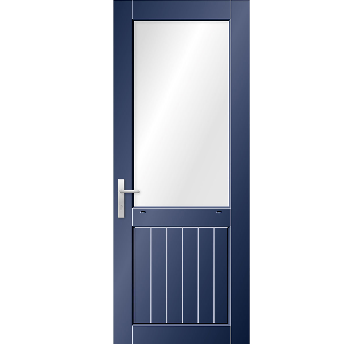Een massieve hardhouten deur met luxe borstwering stapeling, voorzien van een 1-zijdig geïsoleerd bossingpaneel met groeven aan de buitenzijde, welke als achter- of balkondeur kan worden ingezet.