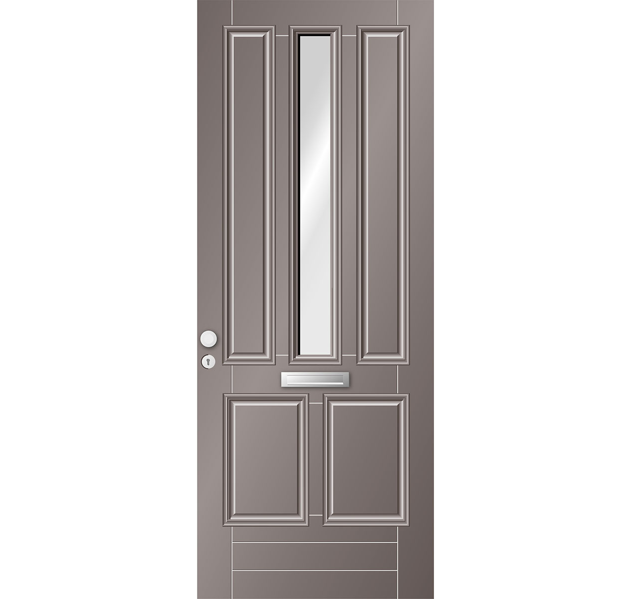 Voordeur 9641N is een luxe massieve hardhouten voordeur, voorzien van vier 1-zijdig geïsoleerde bossingpanelen met massieve sierlijsten.